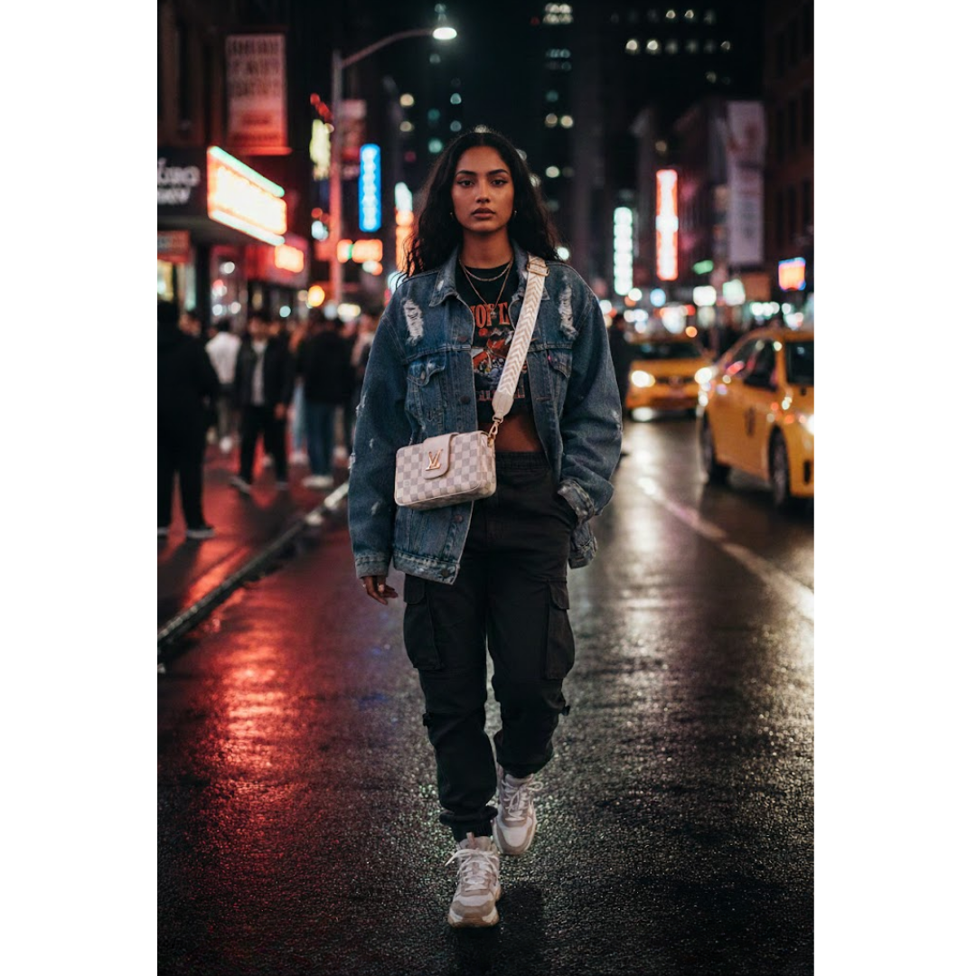 - Removable and adjustable wide patterned fabric strap for a modern look.