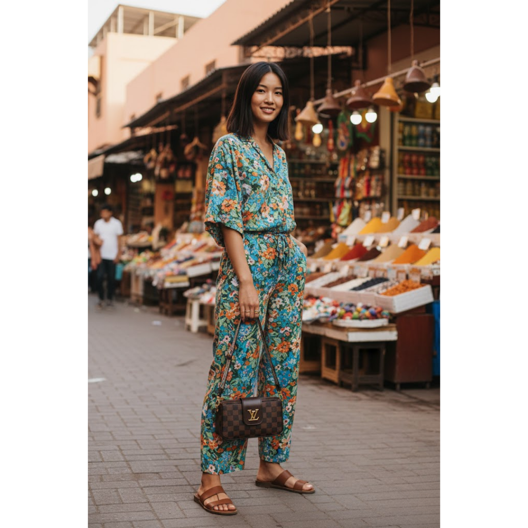 - Removable and adjustable wide patterned fabric strap for a modern look.